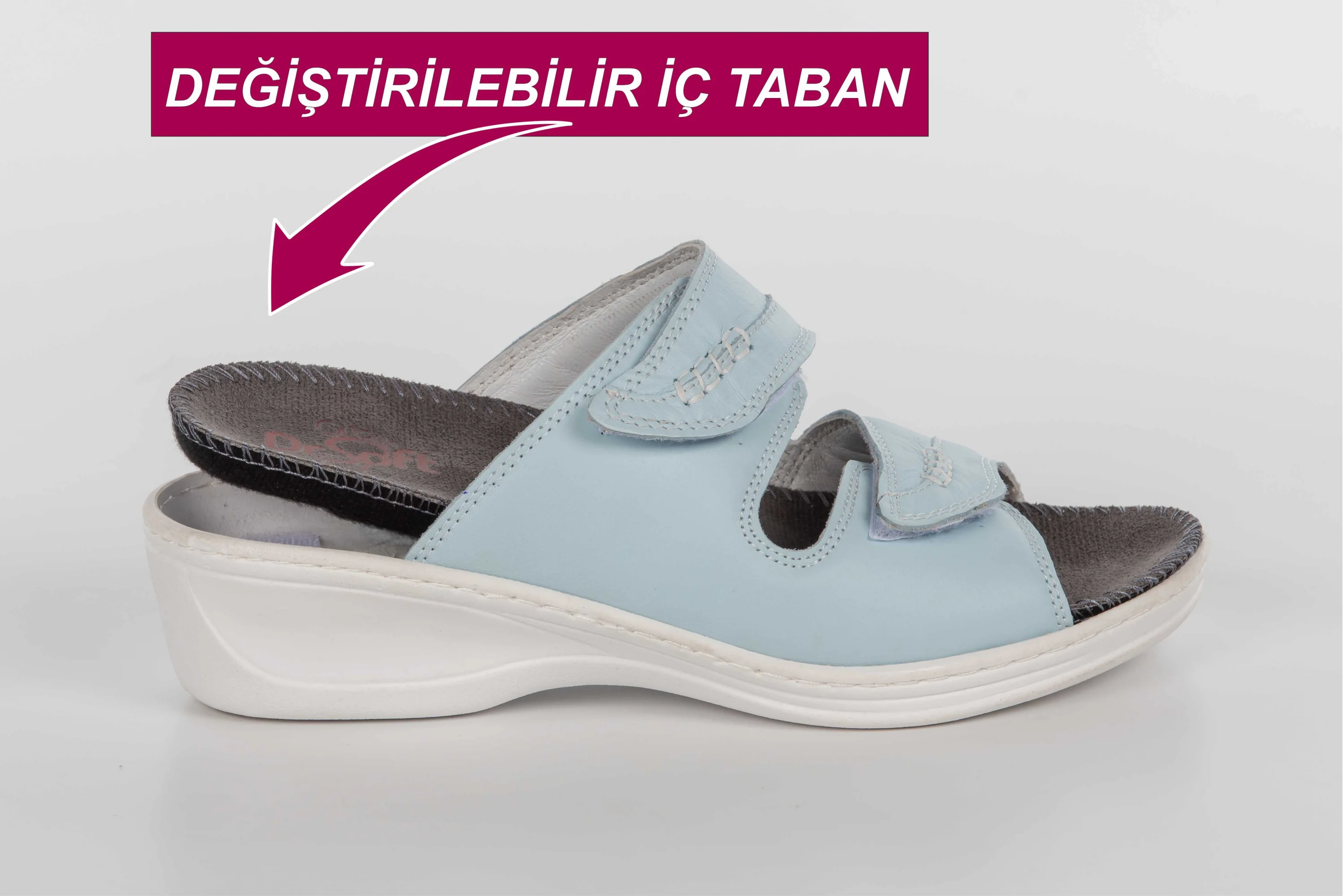Dr.Soft Kadın Anatomik Konfor Terliği 301, vücuda tam uyum sağlayan anatomik yapısı ile gerçek deri üretimi ile dikkat çekiyor. Bu terlik topuk dikeni ve ayak rahatsızlıklarına karşı aanatomik destek sunar. İç tabanı değiştirilebilir özelliği sayesinde uzun süreli konfor sağlar ayrıca ortopedi Doktorunun rçete etmiş olduğu, kendinize ait ortopedik iç tabanlığınızı da kullanabilirsiniz. Günlük kullanıma uygun olan bu terlik, spor giyim tarzınızı tamamlayacak şık ve rahat bir seçenektir. Yumuşak, gerçek NAPA cinsi deri malzeme kullanılarak üretilmiştir. Anatomik yapısı sayesinde ayak şekline tam uyum sağlar. Topuk dikeni rahatsızlıklarına karşı anatomik destek sunar. İç tabanı değiştirilebilir özelliği sayesinde uzun süreli konfor sağlar. Günlük kullanıma uygun, spor giyim tarzınızı tamamlayacak şık tasarım.