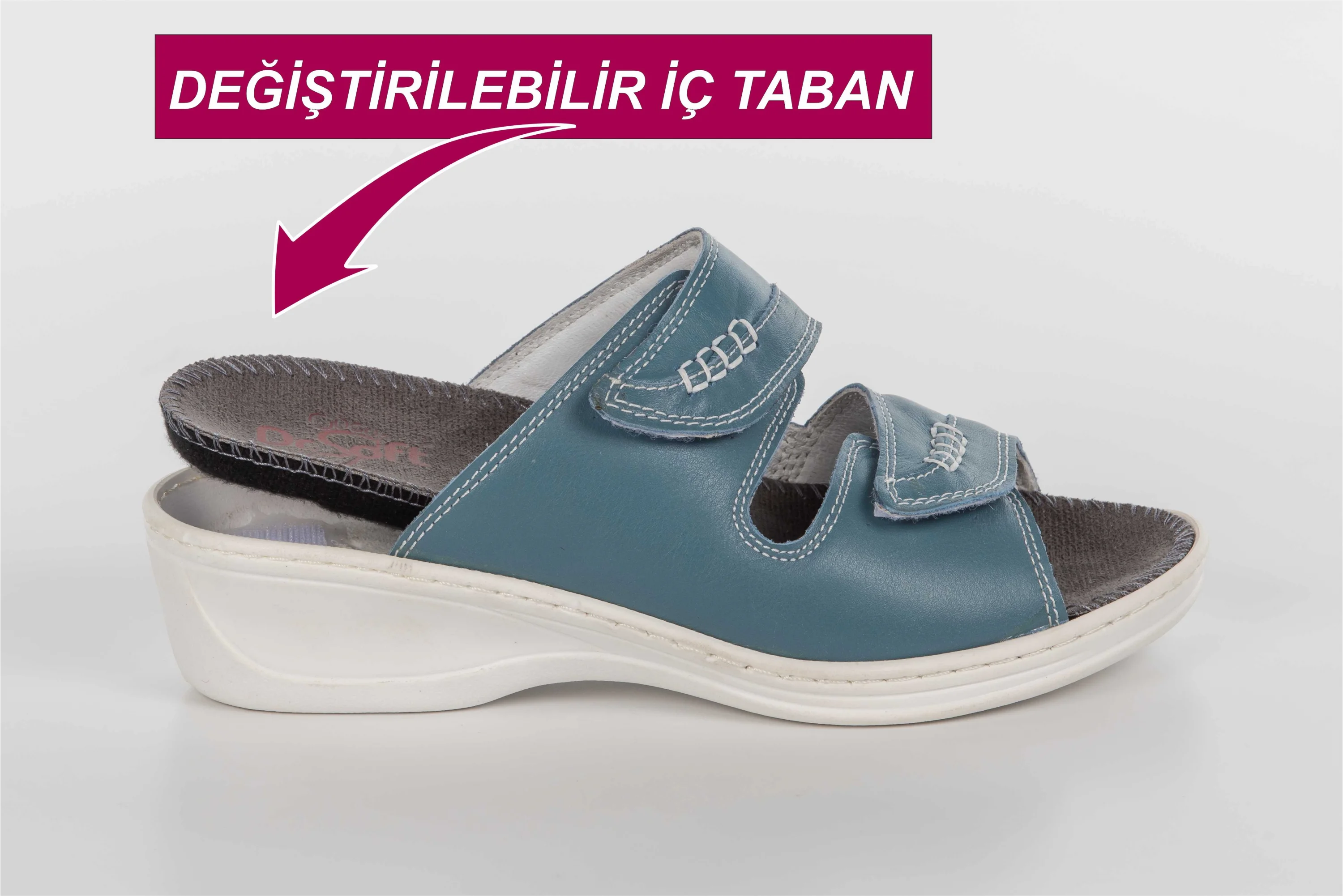 Dr.Soft Kadın Anatomik Konfor Terliği 301, vücuda tam uyum sağlayan anatomik yapısı ile gerçek deri üretimi ile dikkat çekiyor. Bu terlik topuk dikeni ve ayak rahatsızlıklarına karşı aanatomik destek sunar. İç tabanı değiştirilebilir özelliği sayesinde uzun süreli konfor sağlar ayrıca ortopedi Doktorunun rçete etmiş olduğu, kendinize ait ortopedik iç tabanlığınızı da kullanabilirsiniz. Günlük kullanıma uygun olan bu terlik, spor giyim tarzınızı tamamlayacak şık ve rahat bir seçenektir. Yumuşak, gerçek NAPA cinsi deri malzeme kullanılarak üretilmiştir. Anatomik yapısı sayesinde ayak şekline tam uyum sağlar. Topuk dikeni rahatsızlıklarına karşı anatomik destek sunar. İç tabanı değiştirilebilir özelliği sayesinde uzun süreli konfor sağlar. Günlük kullanıma uygun, spor giyim tarzınızı tamamlayacak şık tasarım.