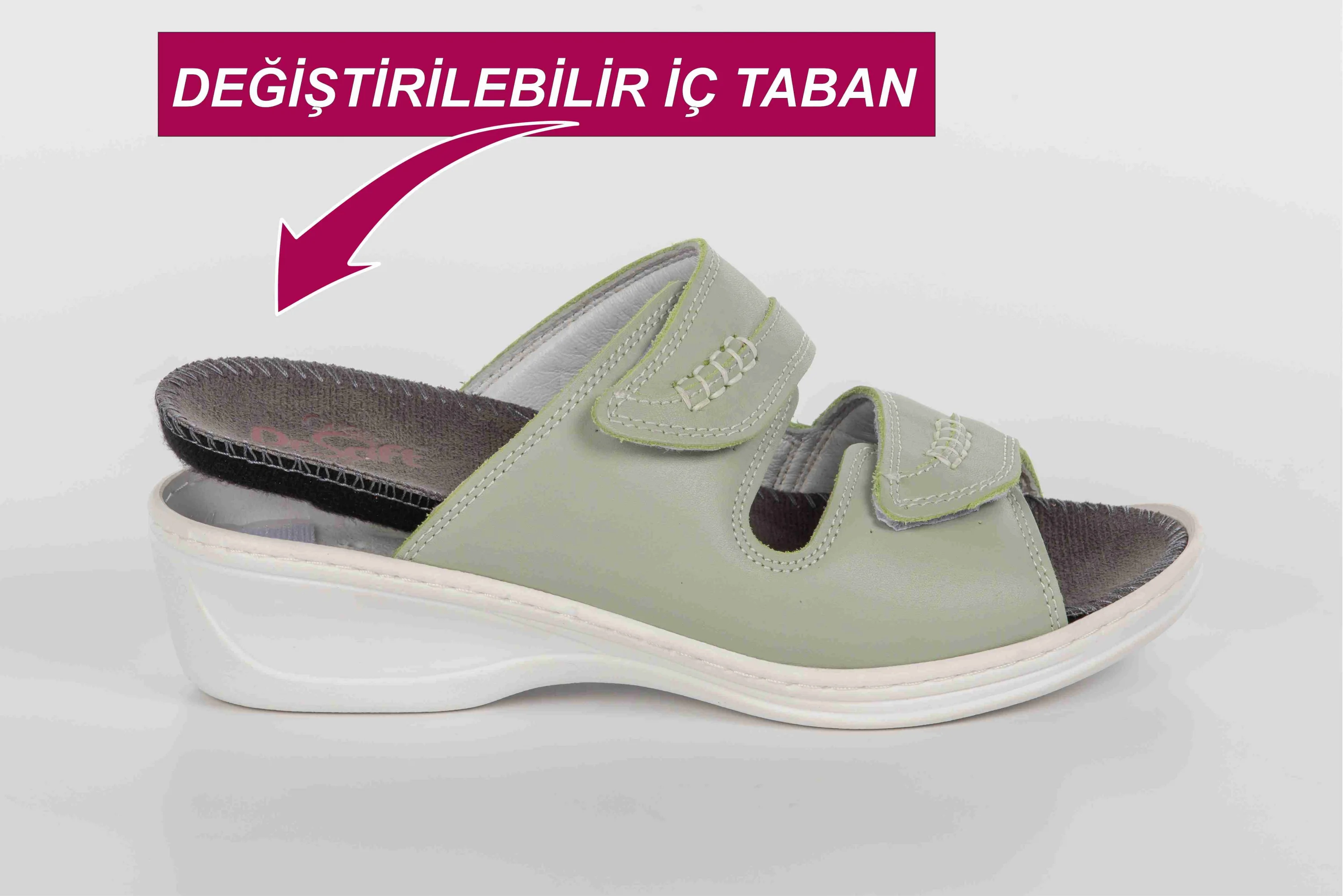 Dr.Soft Kadın Anatomik Konfor Terliği 301, vücuda tam uyum sağlayan anatomik yapısı ile gerçek deri üretimi ile dikkat çekiyor. Bu terlik topuk dikeni ve ayak rahatsızlıklarına karşı aanatomik destek sunar. İç tabanı değiştirilebilir özelliği sayesinde uzun süreli konfor sağlar ayrıca ortopedi Doktorunun rçete etmiş olduğu, kendinize ait ortopedik iç tabanlığınızı da kullanabilirsiniz. Günlük kullanıma uygun olan bu terlik, spor giyim tarzınızı tamamlayacak şık ve rahat bir seçenektir. Yumuşak, gerçek NAPA cinsi deri malzeme kullanılarak üretilmiştir. Anatomik yapısı sayesinde ayak şekline tam uyum sağlar. Topuk dikeni rahatsızlıklarına karşı anatomik destek sunar. İç tabanı değiştirilebilir özelliği sayesinde uzun süreli konfor sağlar. Günlük kullanıma uygun, spor giyim tarzınızı tamamlayacak şık tasarım.